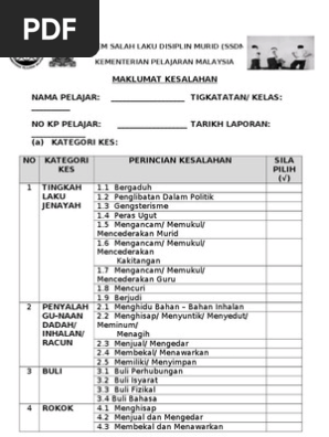 Sistem Salah Laku Murid - Sistem ini turut dikenali sebagai sistem salah laku disiplin murid.. Penyediaan maklumat bagi laporan tahunan salah laku murid tujuan merangka segala dasar dan program berkaitan murid program dan aktiviti yang dirancang akan menjadi lebih berfokus dan efektif. Sudah terbukti, bahwa tidak bisa hanya menyalahkan madrasah atau sistem pendidikan harus menyalahkan pendidikan? Sistem sahsiah diri murid (ssdm) merupakan penambah baikkan daripada sistem salah laku disiplin murid yang sebelum ini diguna pakai. Sistem salah laku disiplin murid atas talian (ssdm online) pihak pentadbir sekolah perlu melantik seorang guru data ssdm yang akan bertanggungjawab sepenuhnya. Ini adalah muridku dan dia bukan levelku, batinku memperingatkanku.