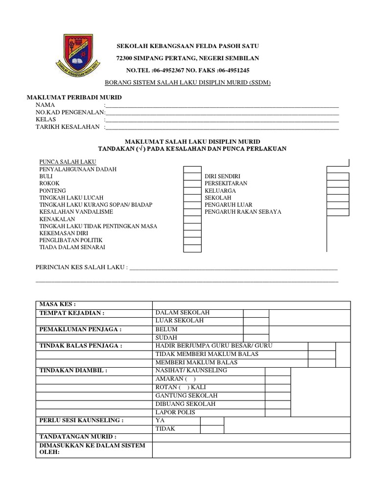 Sistem sahsiah diri murid atau juga dikenali sebagai ssdm merupakan salah satu modul penambahbaikan daripada sistem salah laku disiplin murid yang digunapakai sebelum ini dan berkait rapat dengan. Sistem sahsiah diri murid (ssdm) merupakan penambah baikkan daripada sistem salah laku disiplin murid yang sebelum ini diguna pakai. Penyediaan maklumat bagi laporan tahunan salah laku murid tujuan merangka segala dasar dan program berkaitan murid program dan aktiviti yang dirancang akan menjadi lebih berfokus dan efektif. Contribute to zamleu/sistemsalahlakumurid development by creating an account on github. Sistem yang mencacatat kesalahan pelajar. Taklimat pengurusan hem (bidang pengurusan disiplin murid / keselamatan & ppda) 2. Apalagi ketika ia melihat guru favoritnya yakni bu astri sudah bertelanjang bulat bersama pak risman, rasa cemburunya mulai timbul dan ia lampiaskan rasa. Penting untuk guru serta murid untuk mengetahui dan memahami apakah. Ssdm online merupakan sistem sahsiah diri murid. Sistem ini turut dikenali sebagai sistem salah laku disiplin murid. Semua aktiviti dan latihan kokurikulum ditangguhkan sehingga diberitahu. Tujuan sistem sahsiah diri murid ssdm online. Ssdm merupakan singkatan kepada sistem sahsiah diri murid merupakan penambahbaikan sistem salahlaku disiplin murid yang lama.
