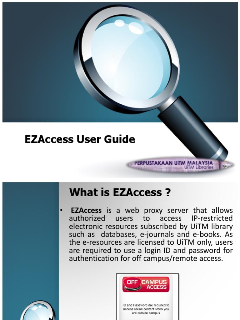 Ezaccess User Guide Ezaccess Is A Web Proxy Server That Allows Authorized Users To Access Ip Restricted Electronic Resources Subscribed By Uitm Library Ppt Download from images.slideplayer.com 469 likes · 4 talking about this. +48 17 866 12 63; The entitytransaction instance may be used serially to begin and commit multiple transactions. Resources are unlocked using access codes and are added to your account for future use. Over the time it has been ranked as high as 5 299 in the world, while most of its traffic comes from malaysia. Resources with limited period access. Uitm.edu.my is tracked by us since april, 2011. Reference and research services :